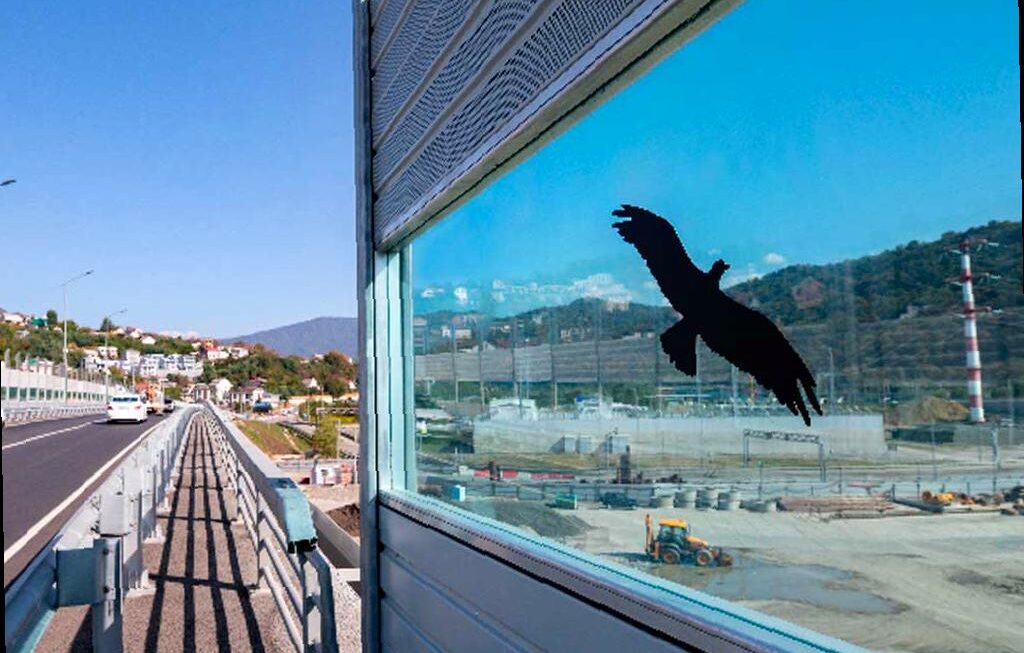 Специалисты ГК «Автодор» украсили шумозащитные экраны вдоль Обхода Адлера силуэтами хищных птиц. Теперь мелкие птицы могут легко заметить препятствие и избежать столкновений.