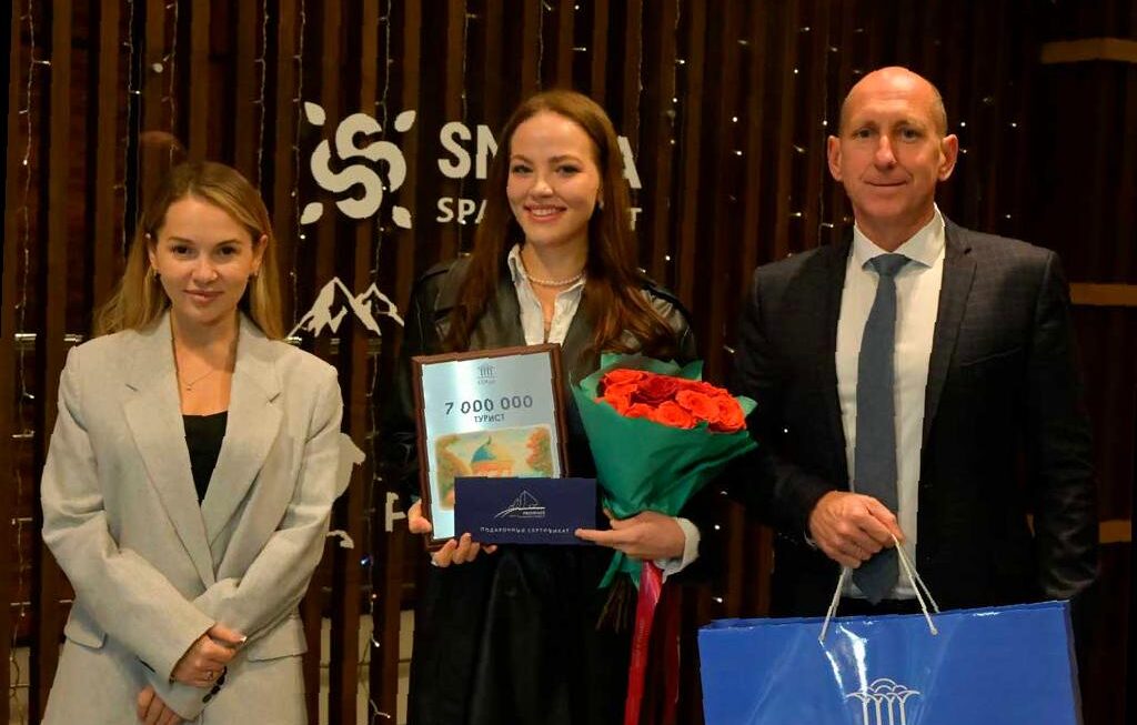 Ирина получила сертификат седьмомиллионного туриста и памятные подарки от администрации.