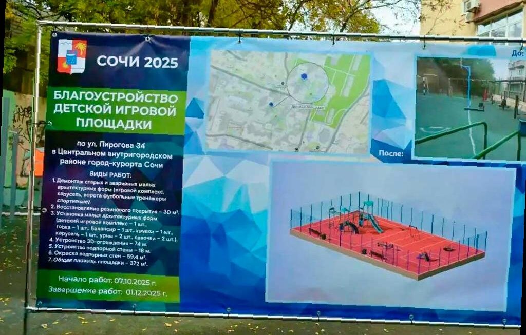 Детскую площадку на улице Пирогова в центре Сочи откроют в декабре