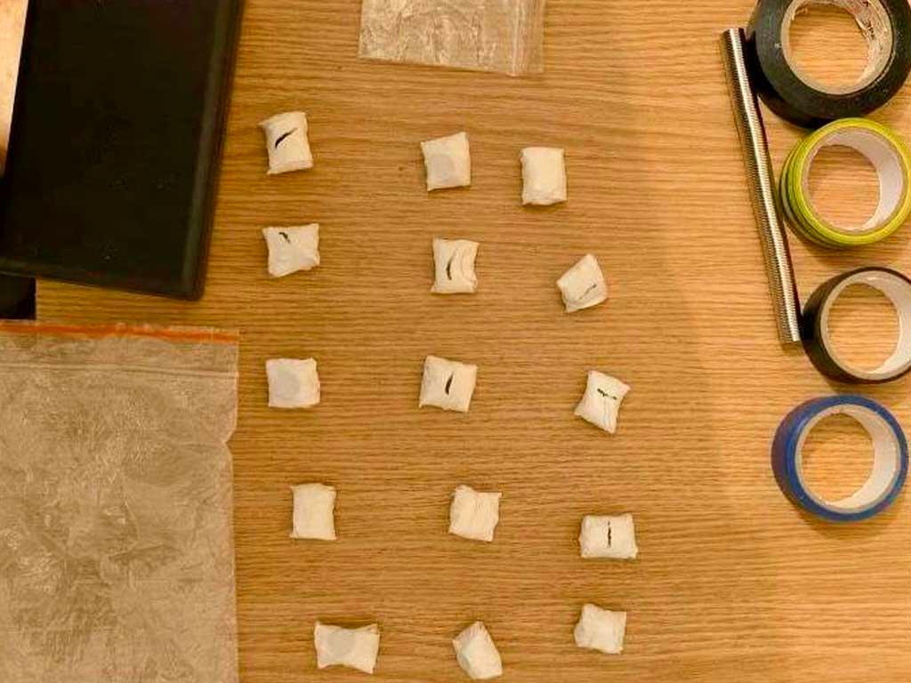 При обыске у мужчины нашли 82 свертка с наркотиками. Еще 15 пакетов, весы и упаковочный материал были обнаружены в его квартире. Экспертиза показала, что это синтетический наркотик эфедрон общим весом около 100 граммов.