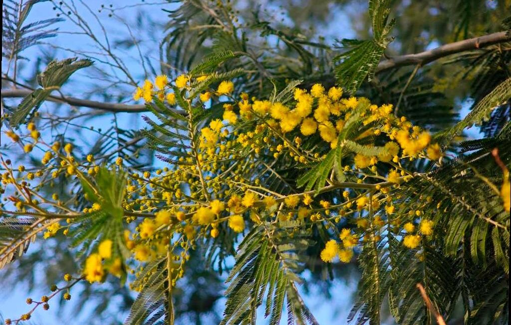 Цветение акации в Сочи продолжается долго и вы можете полюбоваться яркими желтыми цветами до конца марта. Деревья зацветают волнами, не все сразу. Даже небольшие зимние холода не мешают этому процессу, так как многие почки только готовятся распуститься.